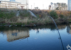 12月9日、前日と同じ冷たい強い北西の風が吹く中、二子に出漁。いつもの様に兵庫橋上に着きポイントに向かっていると上流からフライマンがやって来て「こんにちは」と声を掛けてくる。「コイですかオイカワですか?」と聞くと「ヤマベです」の答え。「水温が低いけど釣れました?」「釣れますがフライがちょっと大きくて。大きいのと釣りたいけれど釣れない」と言う。しばらくお話をした後いつものポイントに入ると、水の透明度はいい。しかし風が強く一面に波立っていて 波の低いところが見当たらない。それでもお気に入りの[虎の門]の中は波がない。その水面を眺めていると陽の射す明るいところを黒い影が横切る。よく見ると数尾のコイが狭いエリアをウロウロしている。そこは[虎の門]の奥で一番フライを落としづらい場所。倒竹が左右と上空にあり、しかも手前は流れが在って上手く落ちてもすぐにドラッグが掛かってしまう。しかも上流から強い風でラインは流れよりも速く動いてしまう。そんな狭いポイントに向かってキャストしてみるが、上手く入らない。手前の倒竹や上の倒竹にフライを引っ掛けながらもしつこくキャストを繰り返す。時折奥で水面に反応するので急いでそれに向かってキャストするとそんな時に限って引っ掛けてしまい反応の近くにフライが落ちない。そんな時 、手前に垂れ下がっている倒竹の向こう側で反応が出た。多分下流から回遊して来た奴だと思うが、水面に頭が出た。[あそこに居るならここで待っていれば]と狙いを定めてキャストするとフライはうまく反応の上流に着水。水面下で動くコイの姿が微かに見え、ゆっくり上流に向かっている。[早く来い]とドラッグが掛かり始める前に喰い付いてくれるのを期待して待つとすぐに頭が水面に出た。フライが口に入るのを確認して合わせると、ガッチリヒット。自分では開始早々にヒットしたと思っていたがリリース時に時計を見ると開始から20分も経っていた。それにしても早い1尾目に釣果ゼロの恐怖から脱出した喜びが沸いてくる。とりあえず1尾に落ち着いて次を狙う。ポイントのコイは同じ様に[虎の門]の奥をうろつい ているのでしつこくキャストを繰り返す。時折奥から出てきて少し手前をうろつくので急いでその上流に落として見るが、黒い影はフライの下を通過するばかりで反応してくれない。[コイが水面に反応している]と[釣れないわけがない]と言う思い込みがあり釣れるまで粘ってしまう。しかし幾ら粘ってみても奥から出てきたコイは水面に反応しない。[もっとほかに元気な奴は居ないか?]と辺りをキョロキョロ見回すが何処にも反応は出ない。波の無い下流の様子を見に行ったが、回遊自体が少ない。唯一回遊していたのは最下流部の倒竹の向こう側。そこにフライを送り込もうと流してみるが、手前の流れに引っぱられて奥に流れて行かない。やっと手前にやってきたのを見つけてフライを流してみるが、フライの下を通過 して行くだけ。下流部を諦め上流の流れ込みに行く。左岸の巻き返しの様子を見たが反応が出ない。だったら沈めてみようとインディケーターを付けて暫く粘っていると、突然水面に2尾が反応した。急いでインディケーターを外しフライを取り替えて反応の出たところにキャスト。巻き返しの真ん中に出た反応を見ている時、落としたフライに波紋が広がった。反射的にロッドを立てるとヒット。2時間経ってやっと2尾目。しかしもう1尾は移動したらしく反応しない。ここを切りあげ本流へ移動。二子橋上流で波の広がる水面を眺めると、波間にコイの頭が見えた。ゆっくり下流に向かっていたが移動すると脅してしまいそうなのですぐ近くに落として気付くのを待ったが反応ナシ。次に橋桁の裏側に行こうと思ったが対岸か ら外人さんが橋桁裏に投げ込んでいるので二子橋の下流に移動。下流は左岸前に波の無い水面が広がりポツポツ反応が出た。左岸は巻き返しが広がっているので巻き返しの端の流芯との境に落として下流に送り込んで見るが、右岸からの風でラインは左岸に流され下流に流れて行かない。落とす筋を変えながら40ヤード以上ラインを送り出した時、目の前に元気な反応が出た。長く出ていたラインを急いで手繰り、やっとフライが反応の所まで戻って来たが、反応は消えてしまう。その後、反応はかなり下流に出るがフライはなかなかそこに流れて行かない。こうなったらこちらから行くしかないと下流に向かうが、反応の出たところ近くまで来ると反応は消えてしまう。そこから下流は波があり釣り難そうなので、久しぶりに兵庫橋 の下流に行って見る。二子橋下から流れに入り眺めると波もなく、2尾の反応が出た。流れ込みからフライを送り込んで見るが反応はかなり下流。30ヤード近くまでフライを送り込んで待っていると、10ヤードほどの所で反応が出た。[またか!]と思いながら急いでラインを手繰り反応の手前から流し始めると、すぐに横から飛び出
